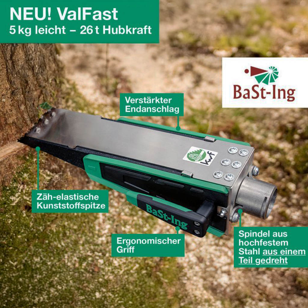 Mit dem ValFast Fällkeil sind die Zeiten in denen Sie viel Zeit und Energie in das Umkeilen eines Baum investiert haben endgültig vorbei. Alles was Sie noch brauchen ist einen starken Schlagschrauber und den Bast-Ing ValFast!