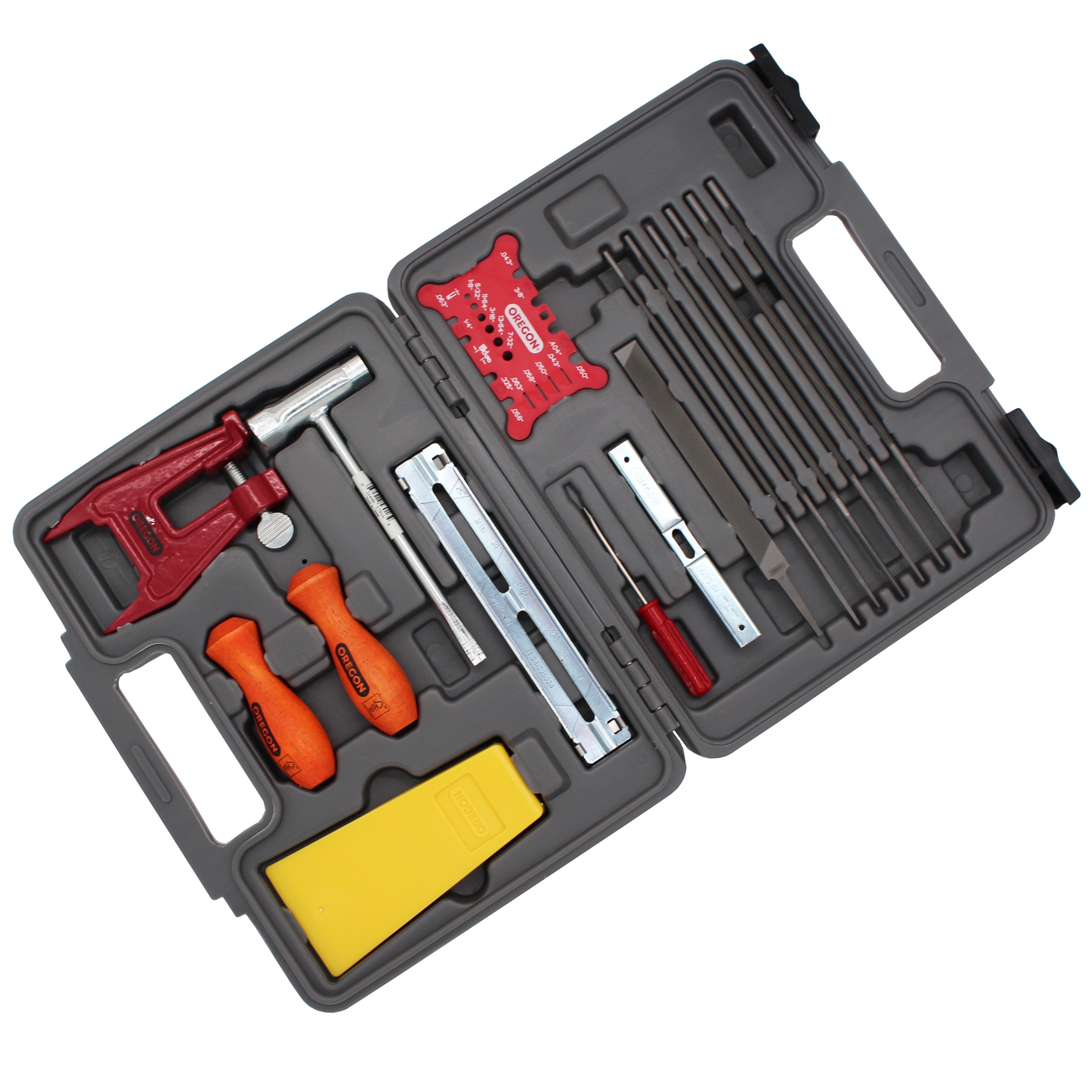 Mit dem Oregon Schärfsatz (16-teilig) haben Sie alle Werkzeuge zur Hand, die Sie für die optimale Pflege und Schärfung Ihrer Motorsäge benötigen. In dem speziell angefertigten Hartschalenkoffer sind alle Teile übersichtlich und sicher verstaut – ideal für Profis und ambitionierte Heimwerker.